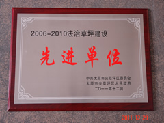2011年12月29日,我公司獲得由中共太原市尖草坪區(qū)委員會和太原市尖草坪區(qū)人民政府聯(lián)合頒發(fā)的《2006-2010法治草坪建設先進單位》榮譽稱號。